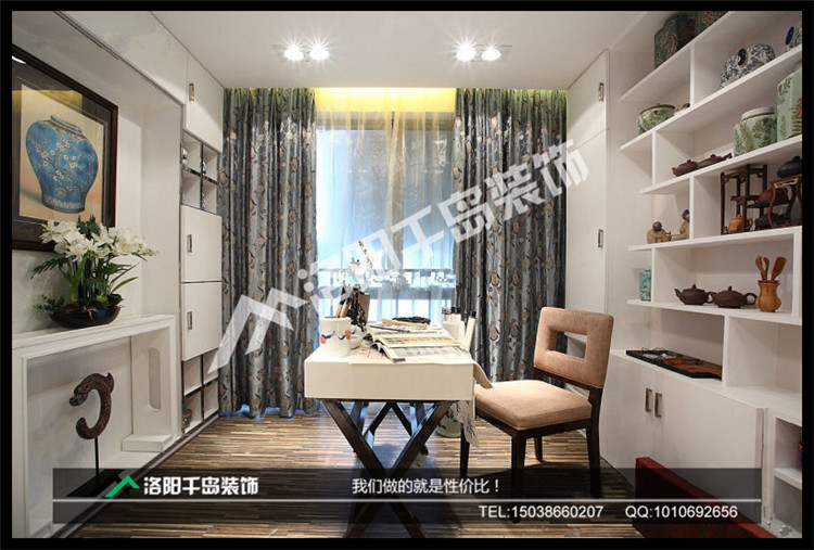 書(shū)房,是一個(gè)學(xué)習(xí)、休閑的地方,工作一整天,回到這里,讓躁動(dòng)的心安靜下來(lái),中式古典裝飾品加上現(xiàn)代化特征明顯的裝修,在這里,整個(gè)人都會(huì)得到凈化。